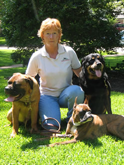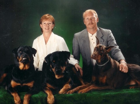My next trainer was just the opposite; she had no problem correcting the dog but had no idea how to properly praise the dog. At this time I had a very neurotic Doberman Pincher. It was during this time I had the opportunity to attend Russell Stovall's "Thinking Dog Seminar". At the seminar I learned any and all behavior problems could be over come. Inspired by Russ's seminar and the fact that any behavior could be overcome I rescued an aggressive Rottwieler from the pound and started working with her. When the trainer I was working with at the time couldn't help me, she encouraged me to contact Russell, which I did and started working with him. At that time, I had to drive 120 miles each way to work with him twice a week. That was in the spring of 1996, 6 months later I placed that Rottwieler with a 86 year old lady and her 4 long haired cats, where she still is. I have been training with Russell ever since and in Sept. 1998 we got married and my dog training got more intense. When not working at Tomball hospital, I am training dogs, whether they are our own or client’s dogs. I have taken several breeds in the obedience and conformation ring and truly enjoy the education I get on a daily basis through the dogs and Russ." |