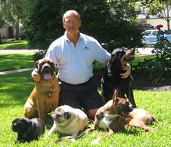 He has given seminars throughout the Pacific Northwest to colleges, schools and utility companies focusing on canine behavior, bite prevention, dealing with aggression and other forms of behavior problems. Russ has assisted members of the U.S. Customs, U.S. Coast Guard, F.B.I., L.A.P.D., State Patrols of Oregon and Washington, Sheriff’s Departments of Oregon, Washington and Idaho to create non-aggressive working units. Russ is one of only a handful of trainers/evaluators for Heart Therapy Dogs International and has performed as an expert witness in dog related cases in Oregon, Washington, California and Texas. Russ is also a CGC evaluator and trained the #3 Doberman in the U.S., the #4 & #5 Rottwieler in the U.S and the first Ibizan Hound to ever have an obedience title. With the increased reports of dog bites and aggression problems in the media, Russ moved to Houston in 1999 to fill the need for an exceptional and qualified trainer. After over 20 years working dogs that other trainers could not or wouldn't work, he has NEVER found a problem that could not be fixed and has NEVER recommended a dog be put to death for behavior problems. |